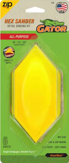 Hex Sander Detail Sanding Kit - Gator - 80-120-220 Assorted Grits - 6 Sheets